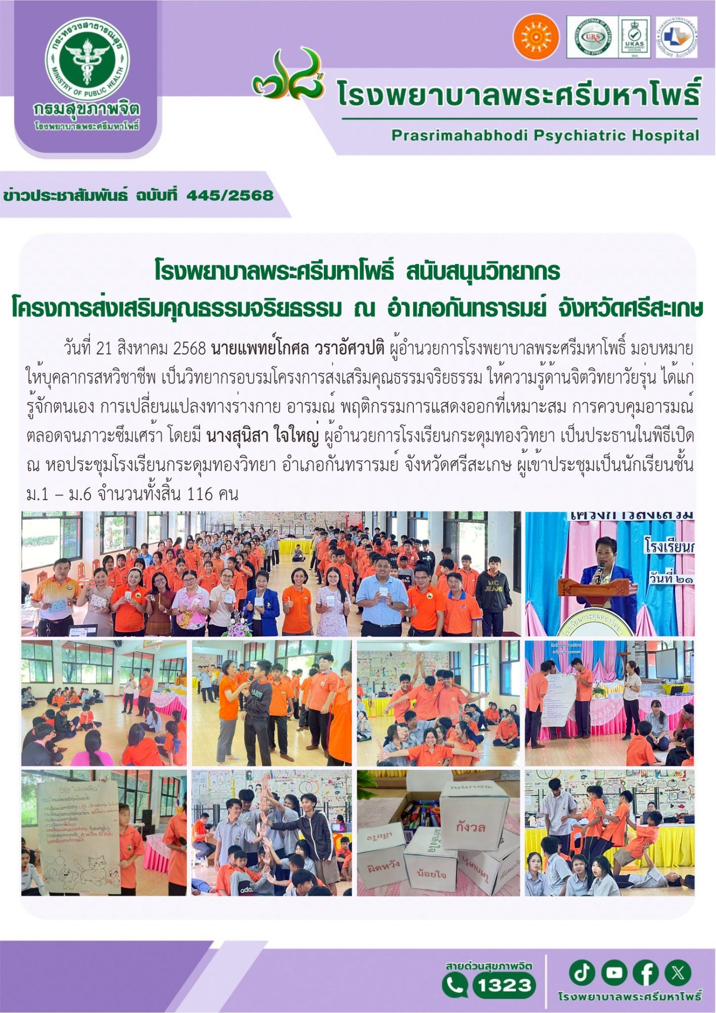 ศูนย์ความรู้โรคซึมเศร้าไทย โรงพยาบาลพระศรีมหาโพธิ์ จังหวัดอุบลราชธานี