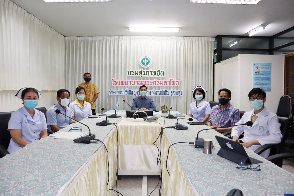 วันที่ 15 พฤษภาคม 2563 (12.45 น.) นายแพทย์ประภาส อุครานันท์ ผู้อำนวยการโรงพยาบาลพระศรีมหาโพธิ์ พร้อมด้วยรองผู้อำนวยการ เข้าร่วมการประชุม“พระศรีฯ ร่วมใจ สู้ภัย COVID-19” ครั้งที่ 6 กับบุคลากรทุกหน่วยงาน ผ่านทาง Tele conference รับฟังทีมรักษาพระศรีฯ ทำหน้าที่และพัฒนา จากตัวแทนจิตแพทย์พระศรีมหาโพธิ์ สื่อสารสร้างสรรค์ ปรับตัวสุขสันต์ ไอทีเตรียมปฏิบัติการ ผ่าน New Normal และปิดการประชุมด้วยการปรบมือให้กำลังใจกันและกัน เติมพลังในการปฏิบัติงานต่อไป