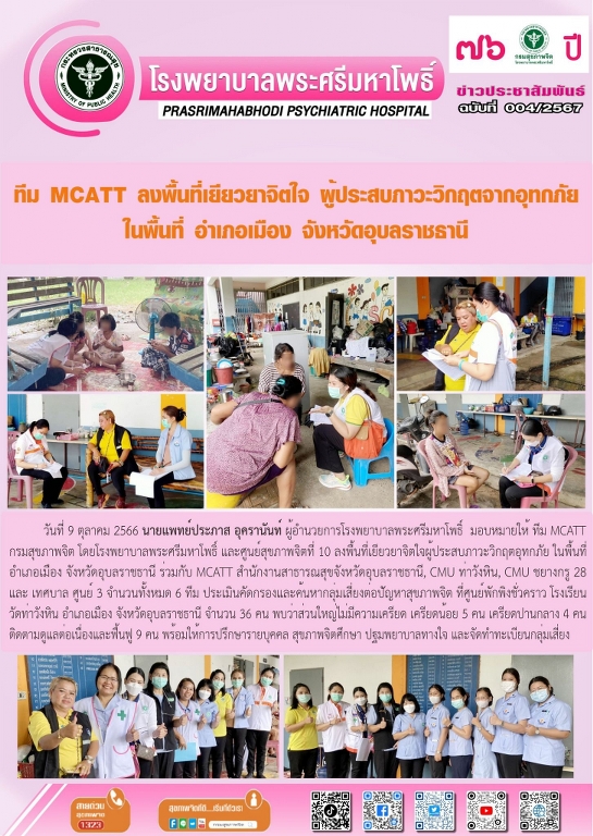 ศูนย์ความรู้โรคซึมเศร้าไทย โรงพยาบาลพระศรีมหาโพธิ์ จังหวัดอุบลราชธานี