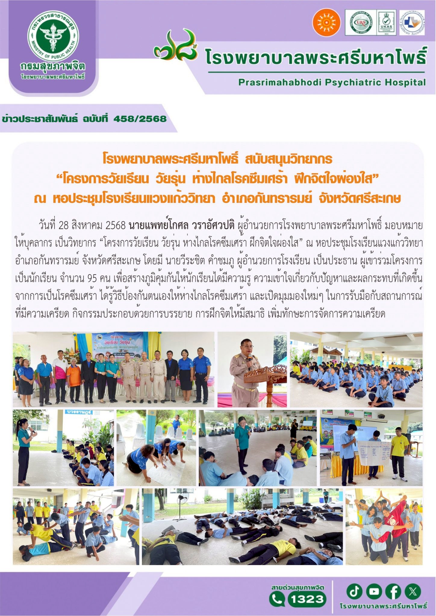 ศูนย์ความรู้โรคซึมเศร้าไทย โรงพยาบาลพระศรีมหาโพธิ์ จังหวัดอุบลราชธานี