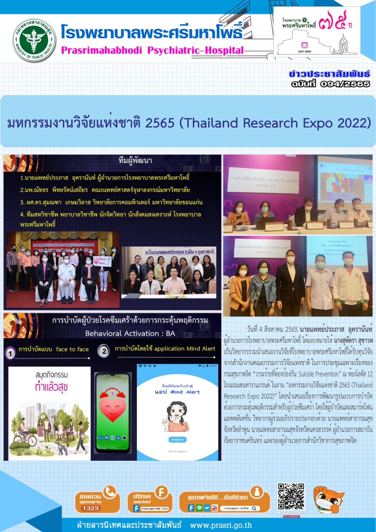 ศูนย์ความรู้โรคซึมเศร้าไทย โรงพยาบาลพระศรีมหาโพธิ์ จังหวัดอุบลราชธานี