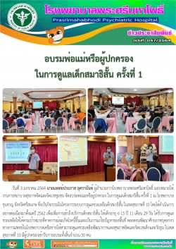 อบรมพ่อแม่หรือผู้ปกครอง ในการดูแลเด็กสมาธิสั้น 3 ม.ค.64